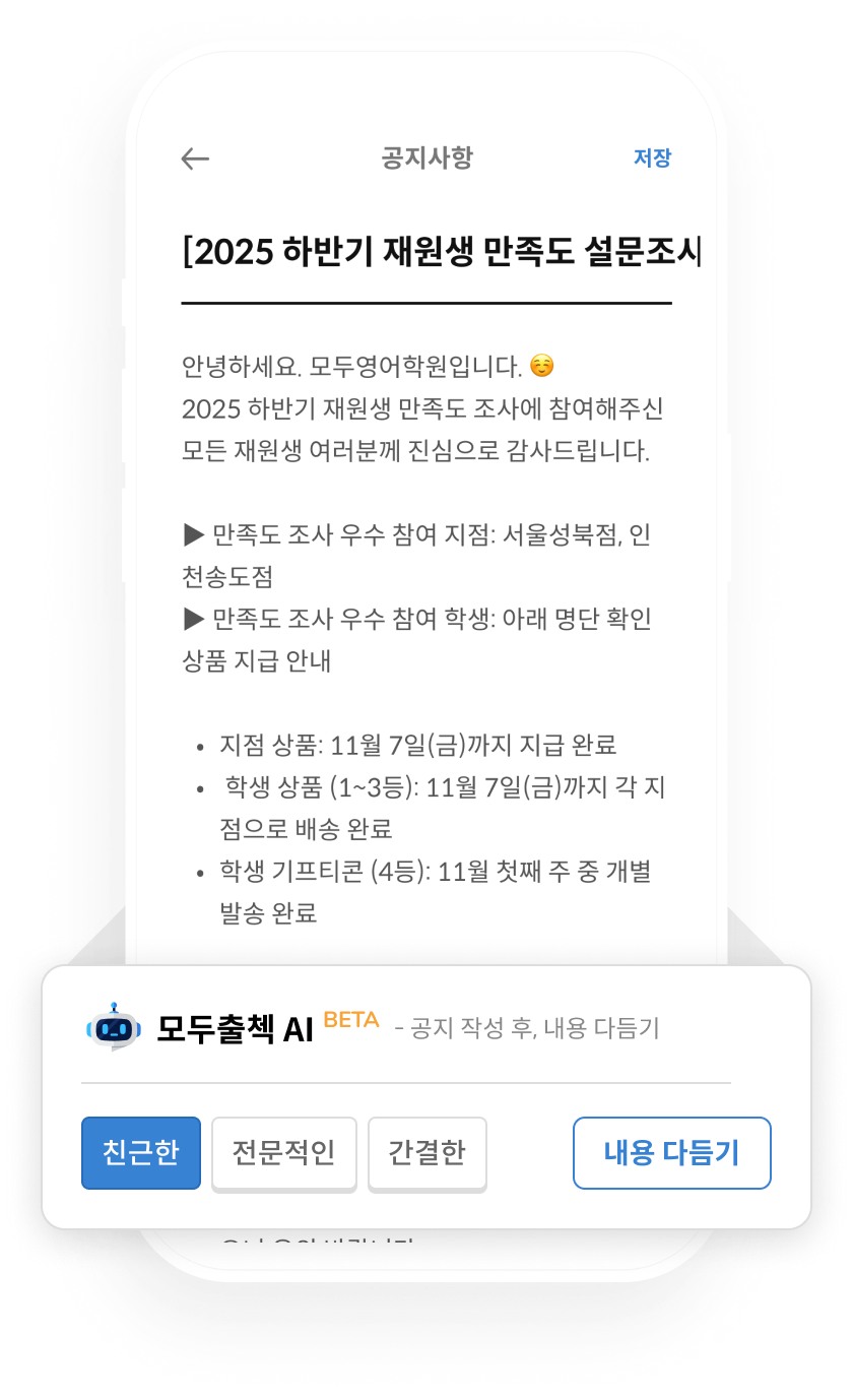 학부모가 공지를 열면, AI가 자동으로 핵심만 한눈에 볼 수 있게 요약해 드립니다.