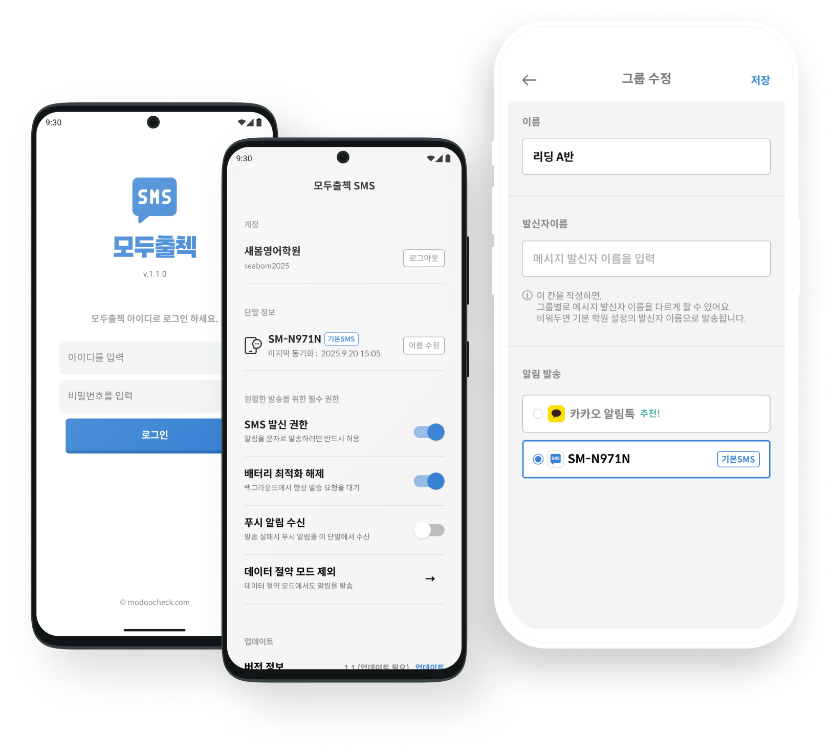 정상 개통된 안드로이드 스마트폰에 ‘모두출첵 SMS 앱’을 설치하고,